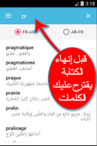 حول قاموس بدون انترنت فرنسي عربي والعكس ناطق مجاني لنظام Android